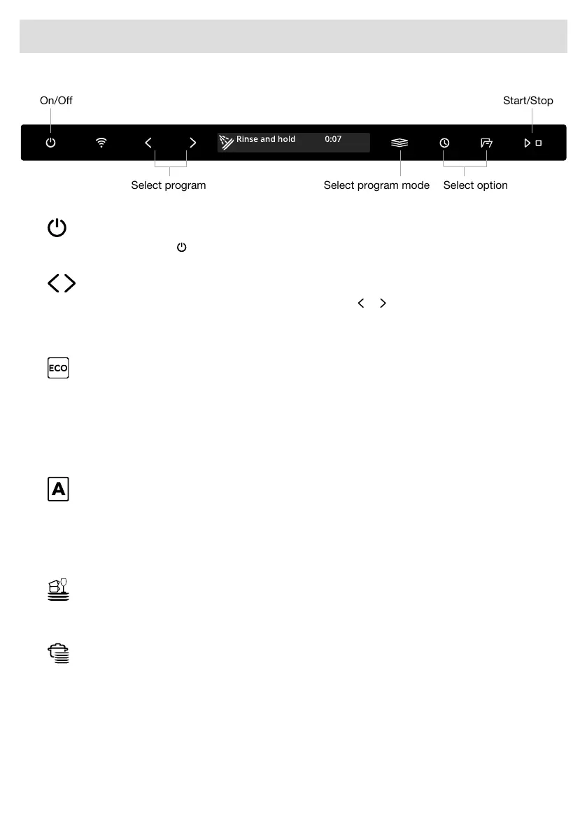 Eco is always pre-selected. To select another program, press or until the desired program is