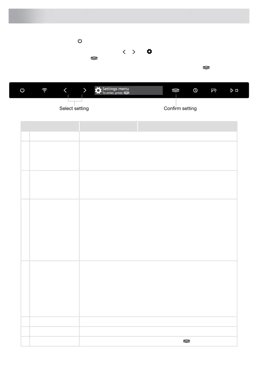 To open the dishwasher Settings menu, press or until Settings menu is shown on the display