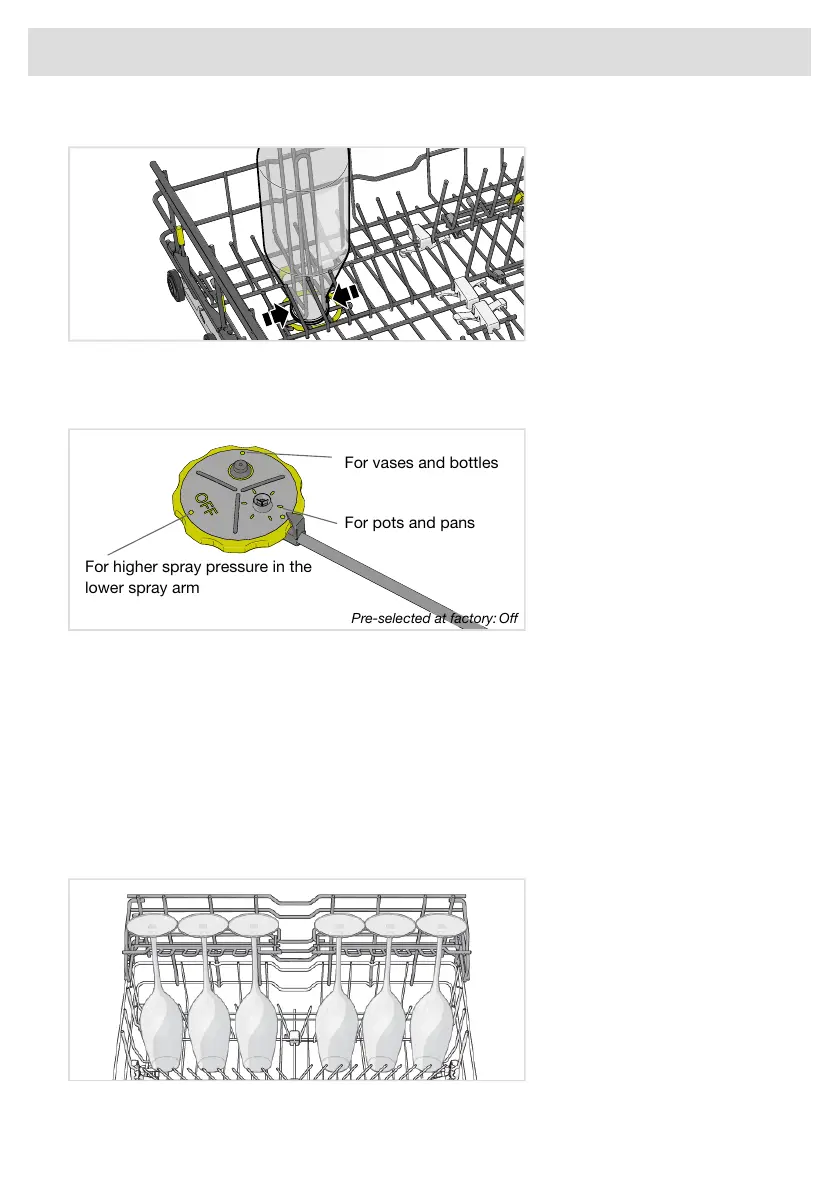 pots and pans or vases and bottles. Turn the dishwasher’s power zones off if you want greater spray