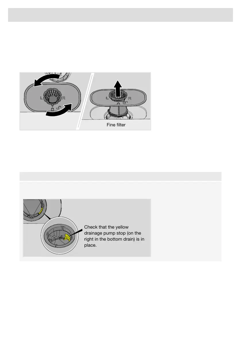 Dishwashing results may be affected if the coarse and fine filters are incorrectly fitted. The