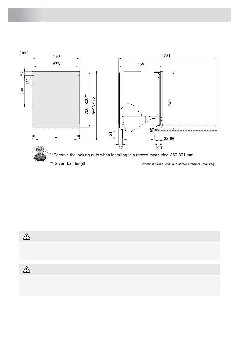 *Remove the locking nuts when installing in a recess measuring 860-861 mm.