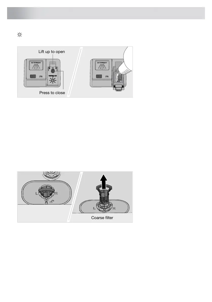 The coarse filter traps larger food particles, which cannot get past the drain pump. Empty the coarse
