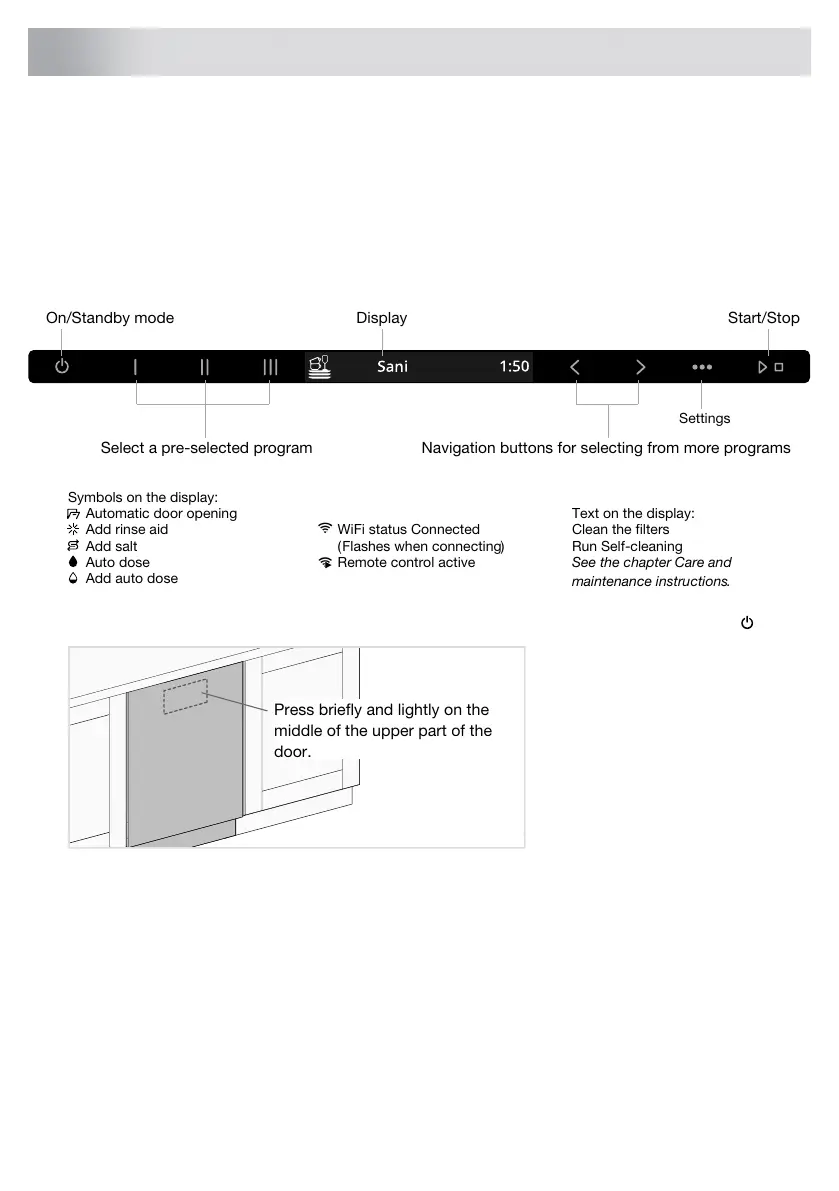 Install the dishwasher; see the chapter Installation instructions. Then open the door and press .