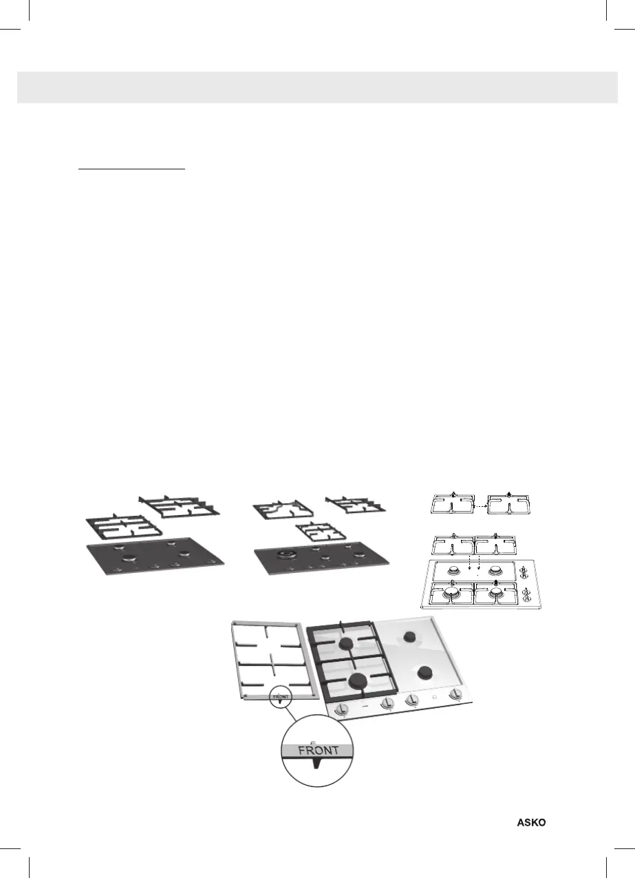 • Place the pan supports back in the right order. The text ‘FRONT’