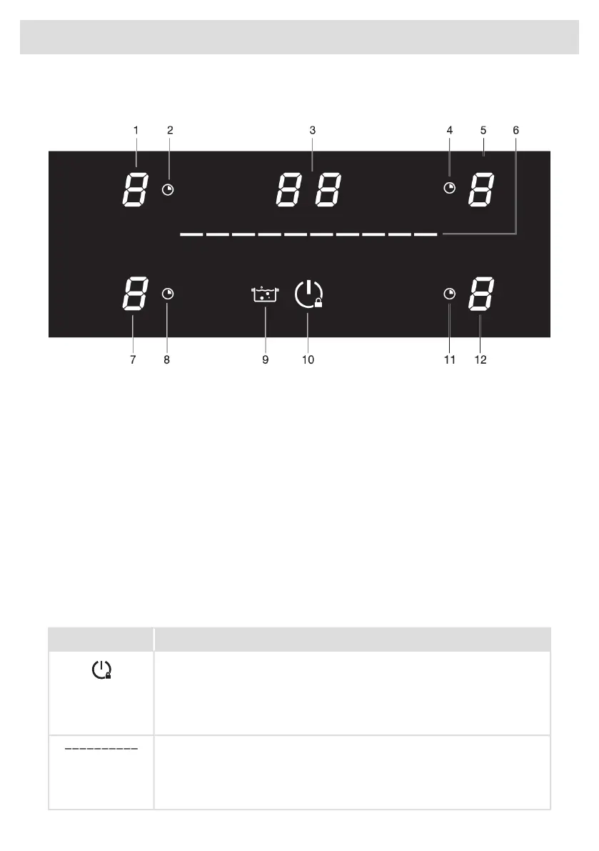 • Open the user menu (with the bring to boil and the cooking zone keys).