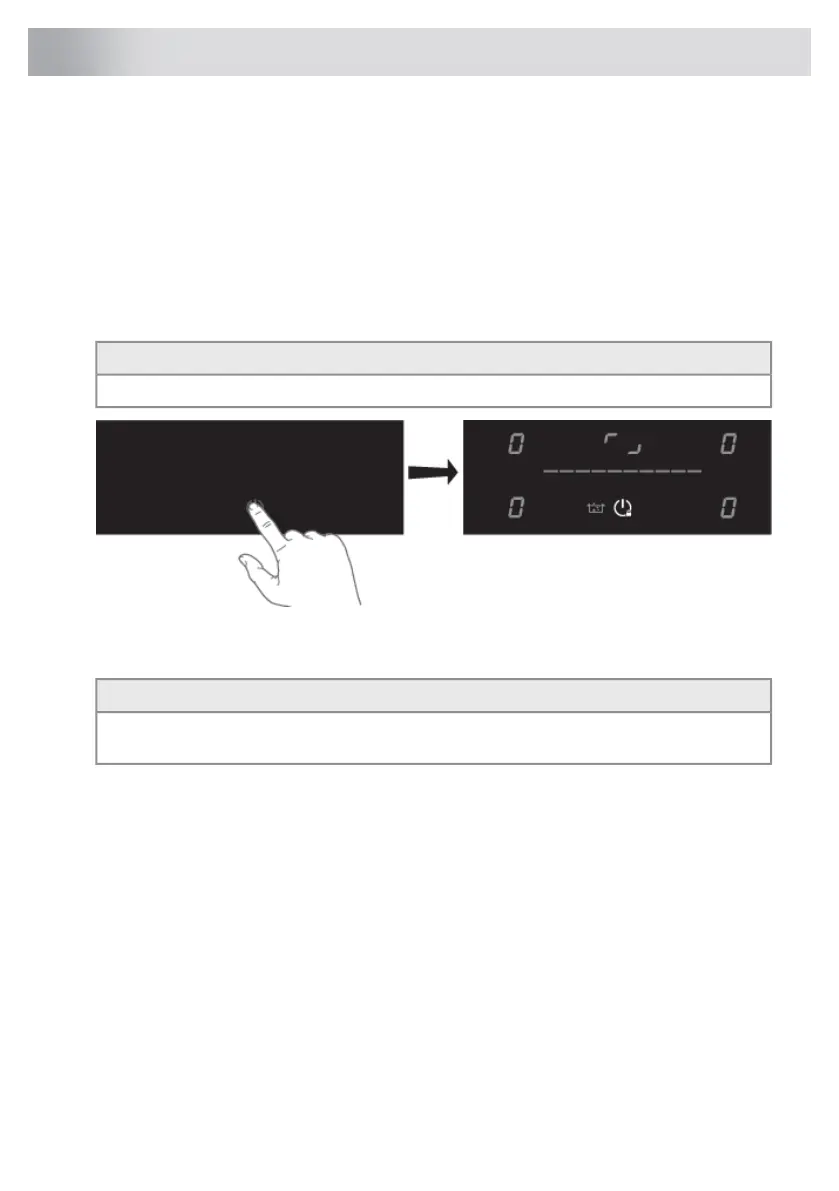 • All cooking zone displays show ‘0’ indicating that the induction hob has entered the state of