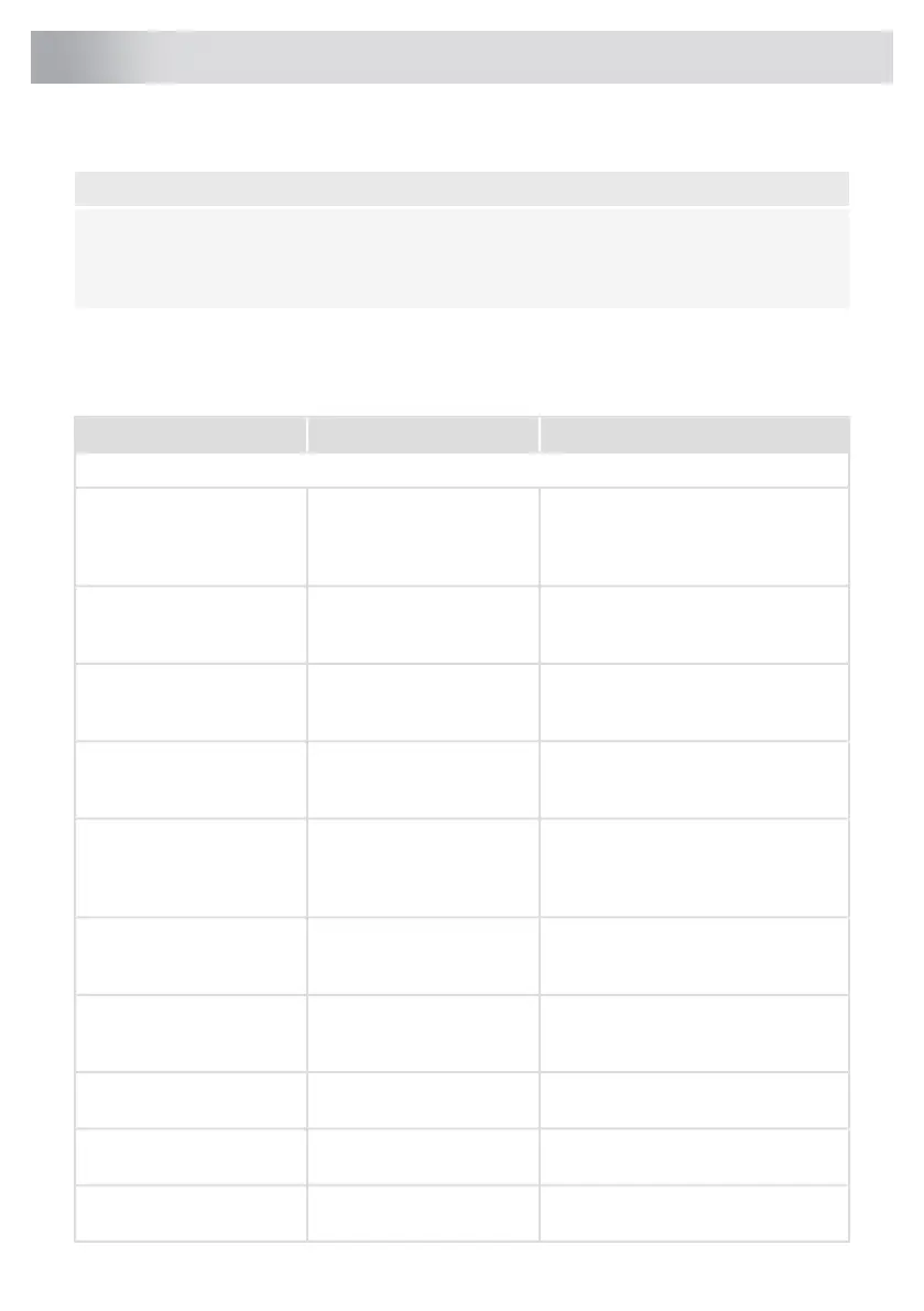 Troubleshooting table