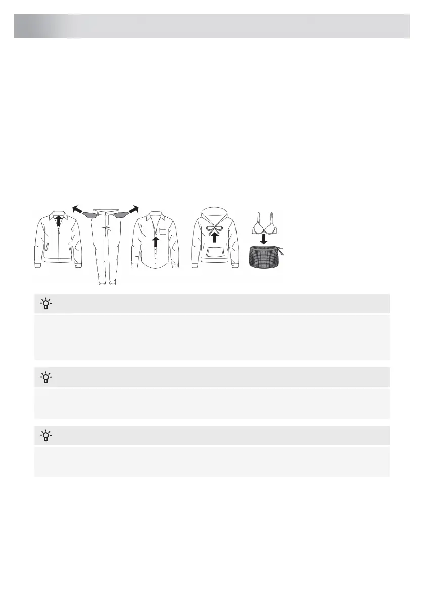 1. Sort the laundry by type and thickness of the fabric (see Program chart).