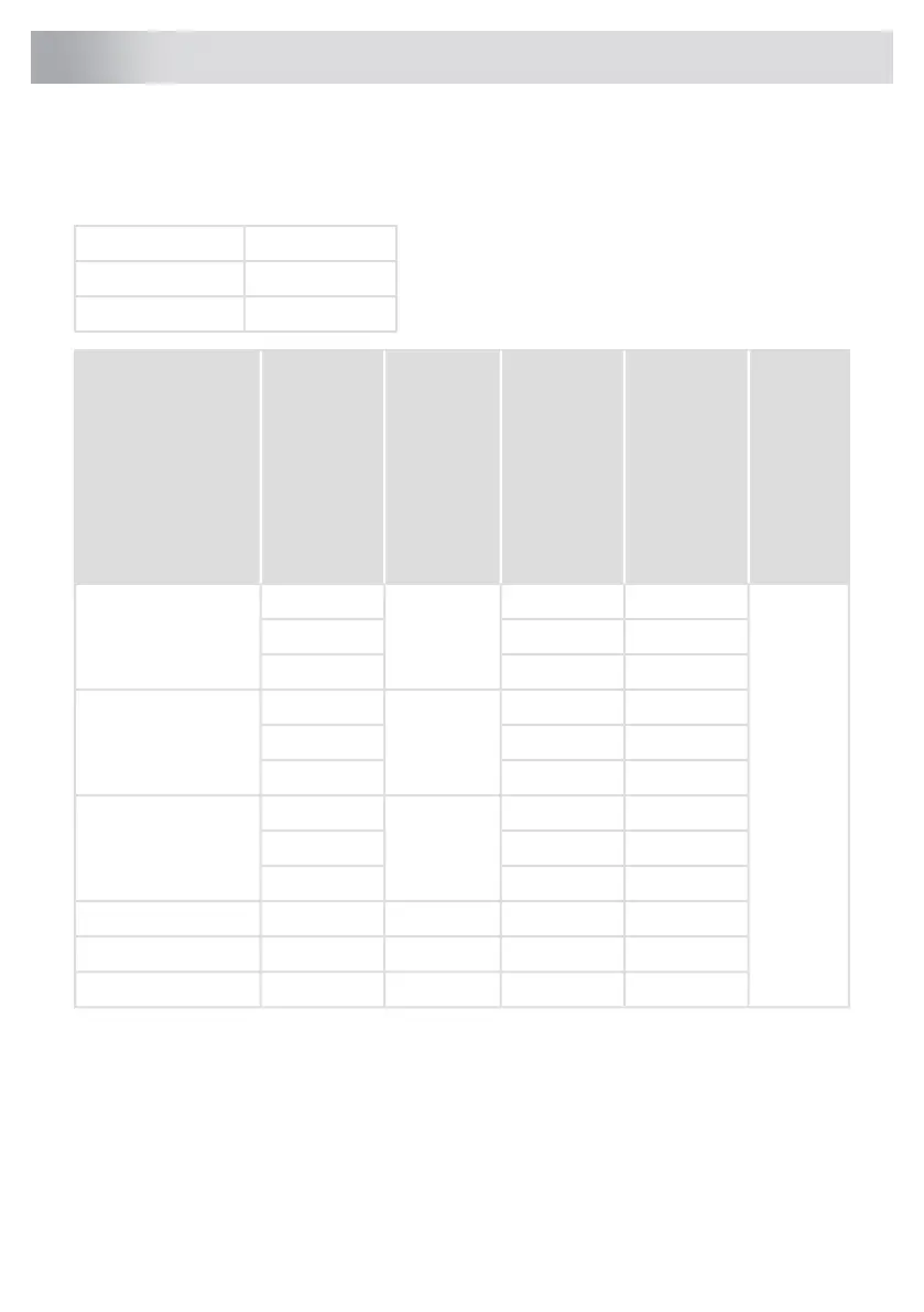 All values in the table are provided per drying cycle.
