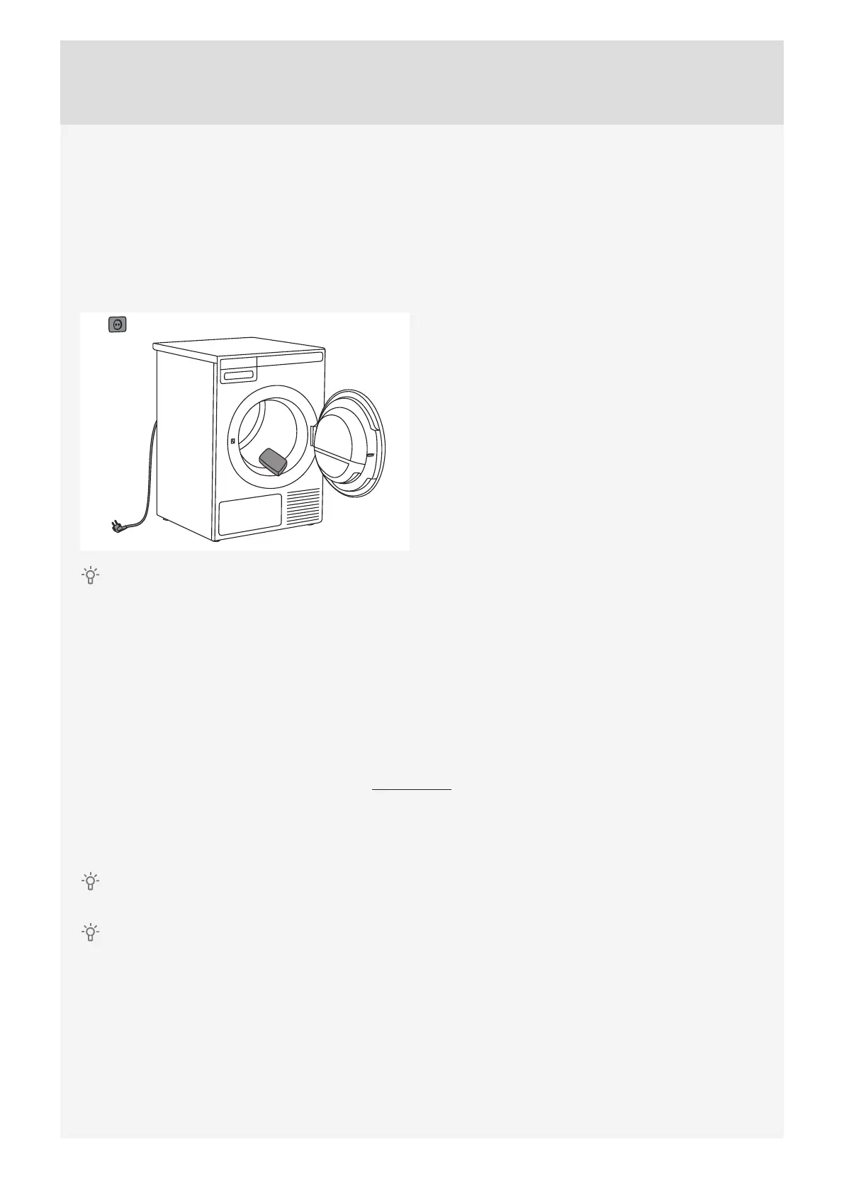 Disconnect the dryer from the power mains and open the door towards you. Before using the dryer for the fi rst