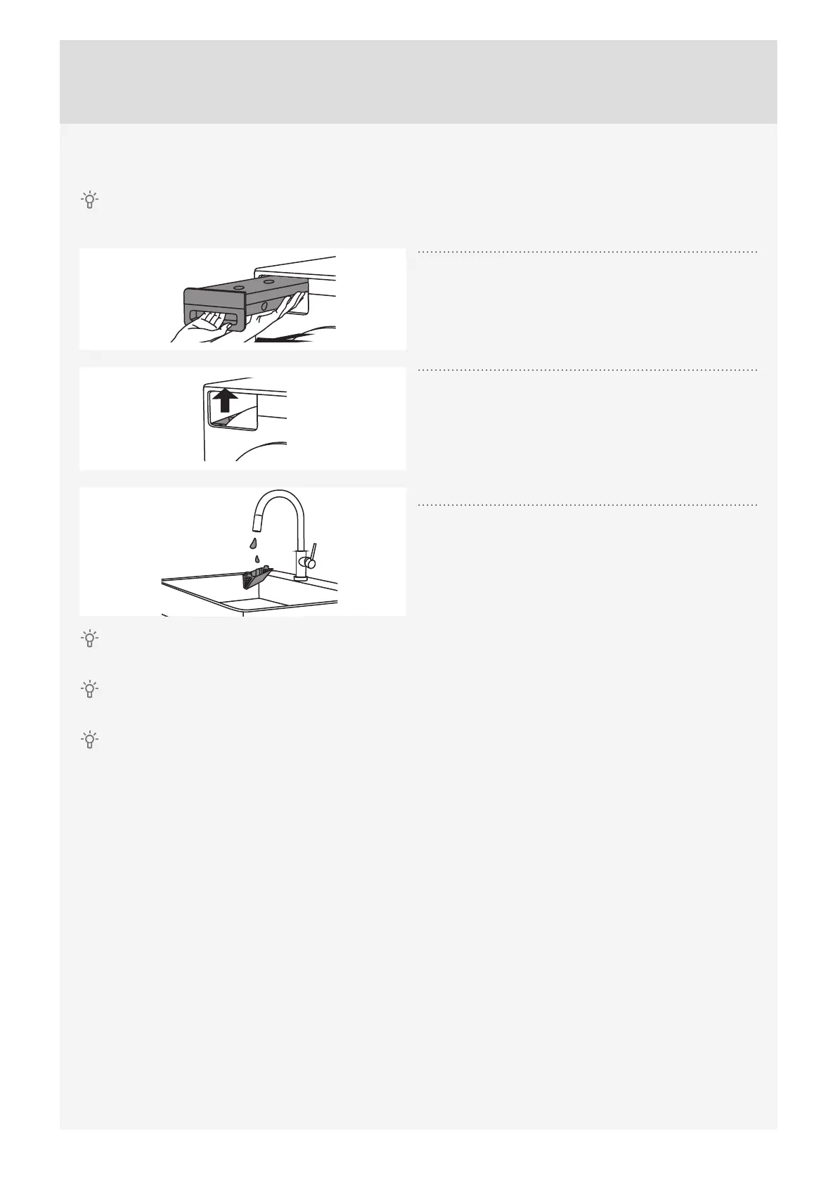 When pulling out the fi lter, make sure not to discard the lint and fi bre accumulated during operation back