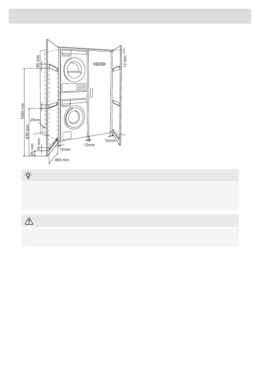 Zorg ervoor dat na de plaatsing de deur van de droger ongehinderd kan worden geopend.