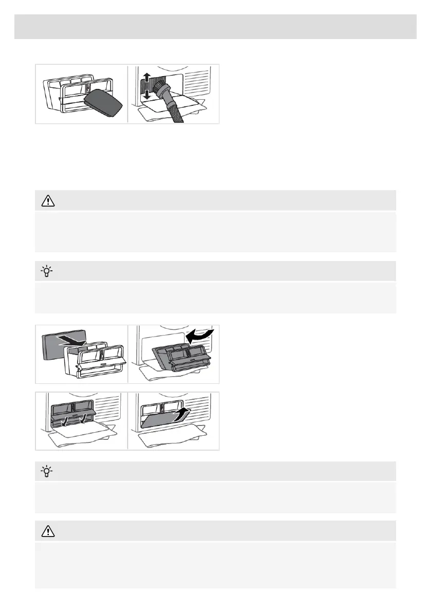 Het filter moet juist worden teruggelegd in het frame, anders kan verstopping ontstaan van de