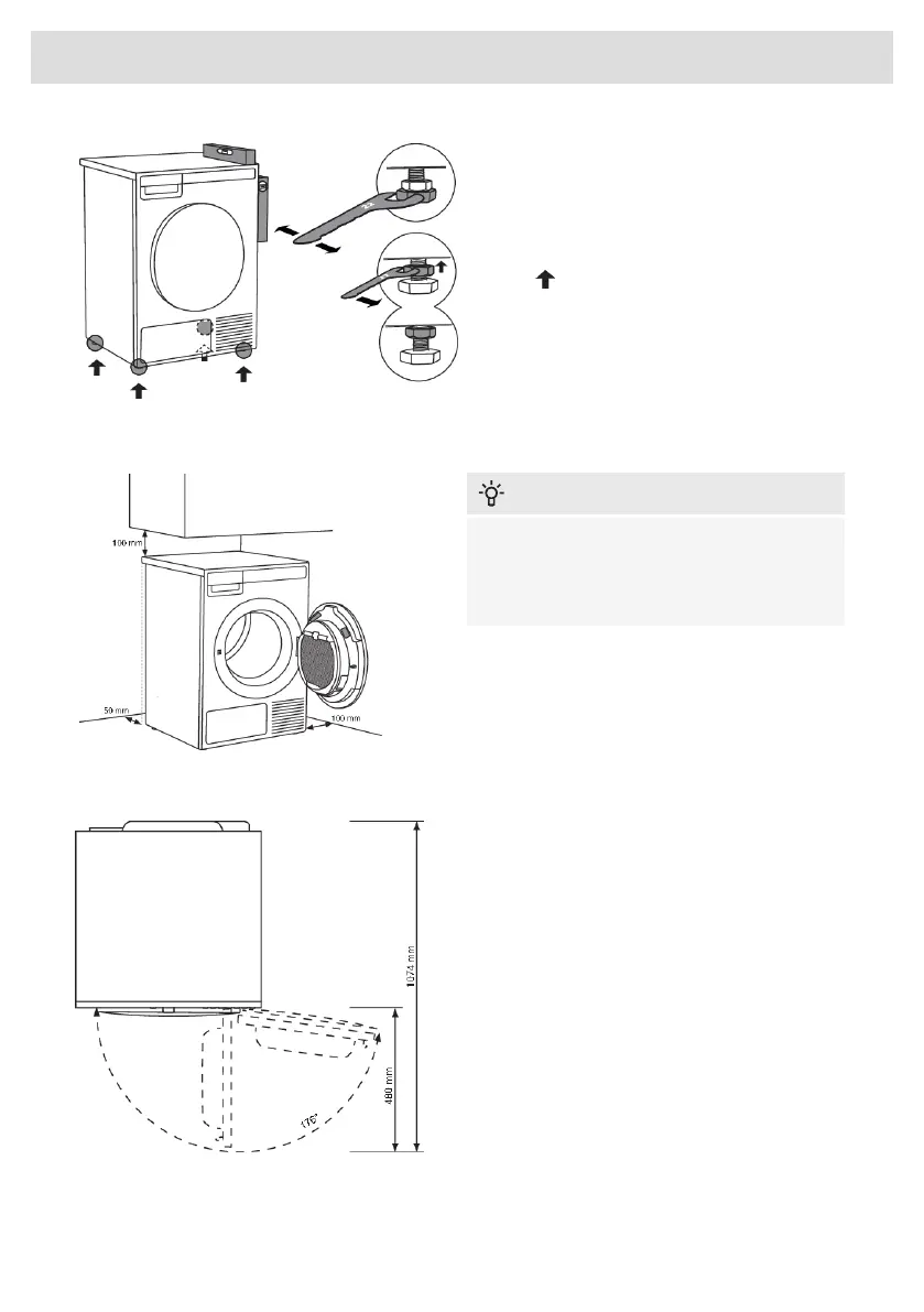 To stack the dryer on top of a washing machine, use the extra vacuum feet and the tipping guard