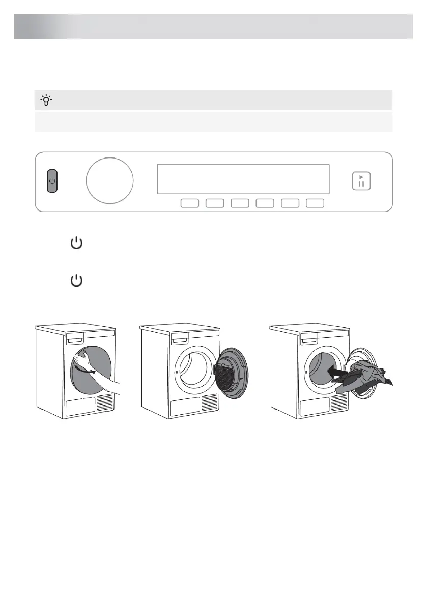 Place the laundry into the empty dryer drum. Make sure there aren't any other objects among the