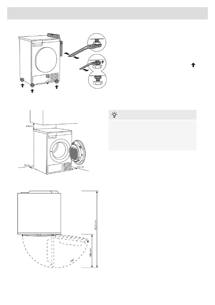 Gebruik voor plaatsing van de droger op de wasmachine de vacuüm pootjes en bescherming tegen