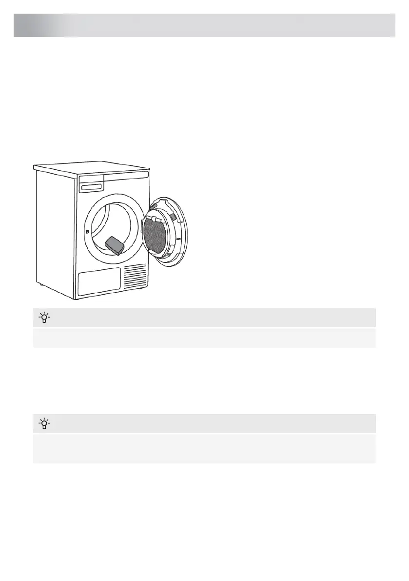 Haal de stekker van de droger uit het stopcontact en open de deur van de droger naar u toe. Reinig