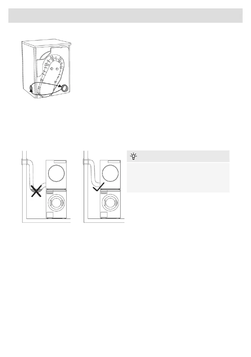 De ontluchtingsslang moet op de kortste en meest rechte manier van de droger naar de afvoeropening