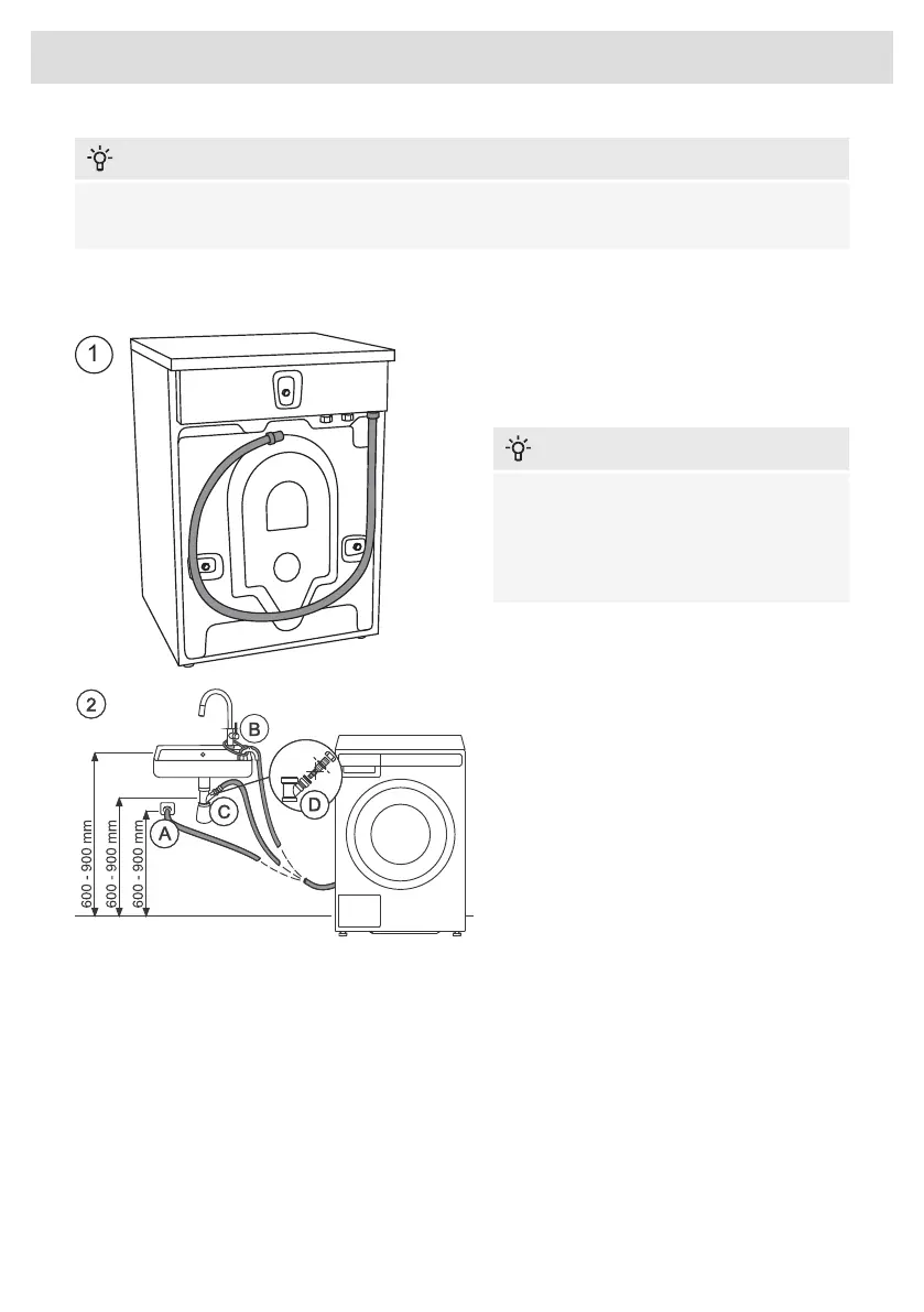 Het uiteinde van de afvoerslang kan niet meer dan 900 mm en moet ten minste 600 mm vanaf de