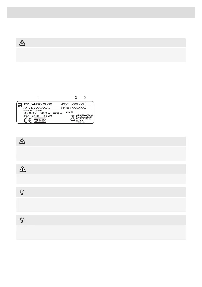 De gegevens van uw wasmachine bevinden zich op het typeplaatje.