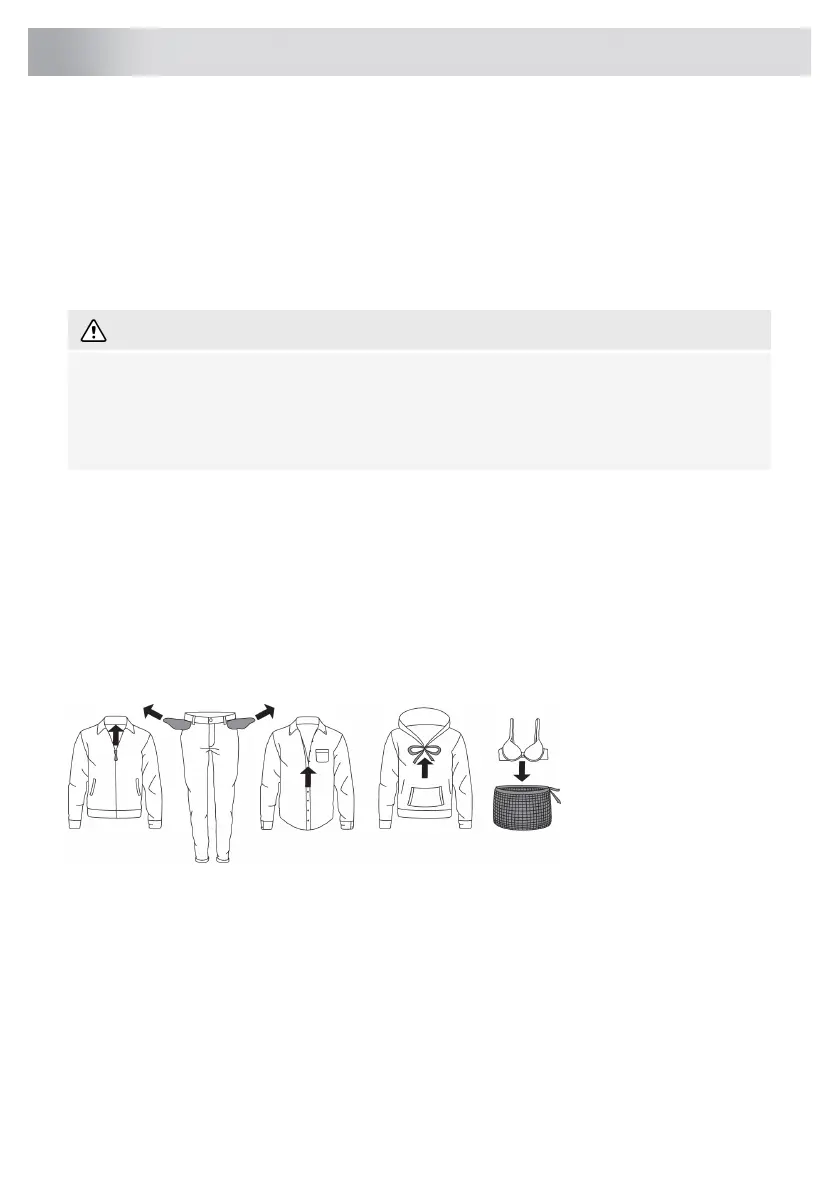 Verwijder eerst zorgvuldig alle vaste voorwerpen en onderdelen uit de kledingstukken die u wilt