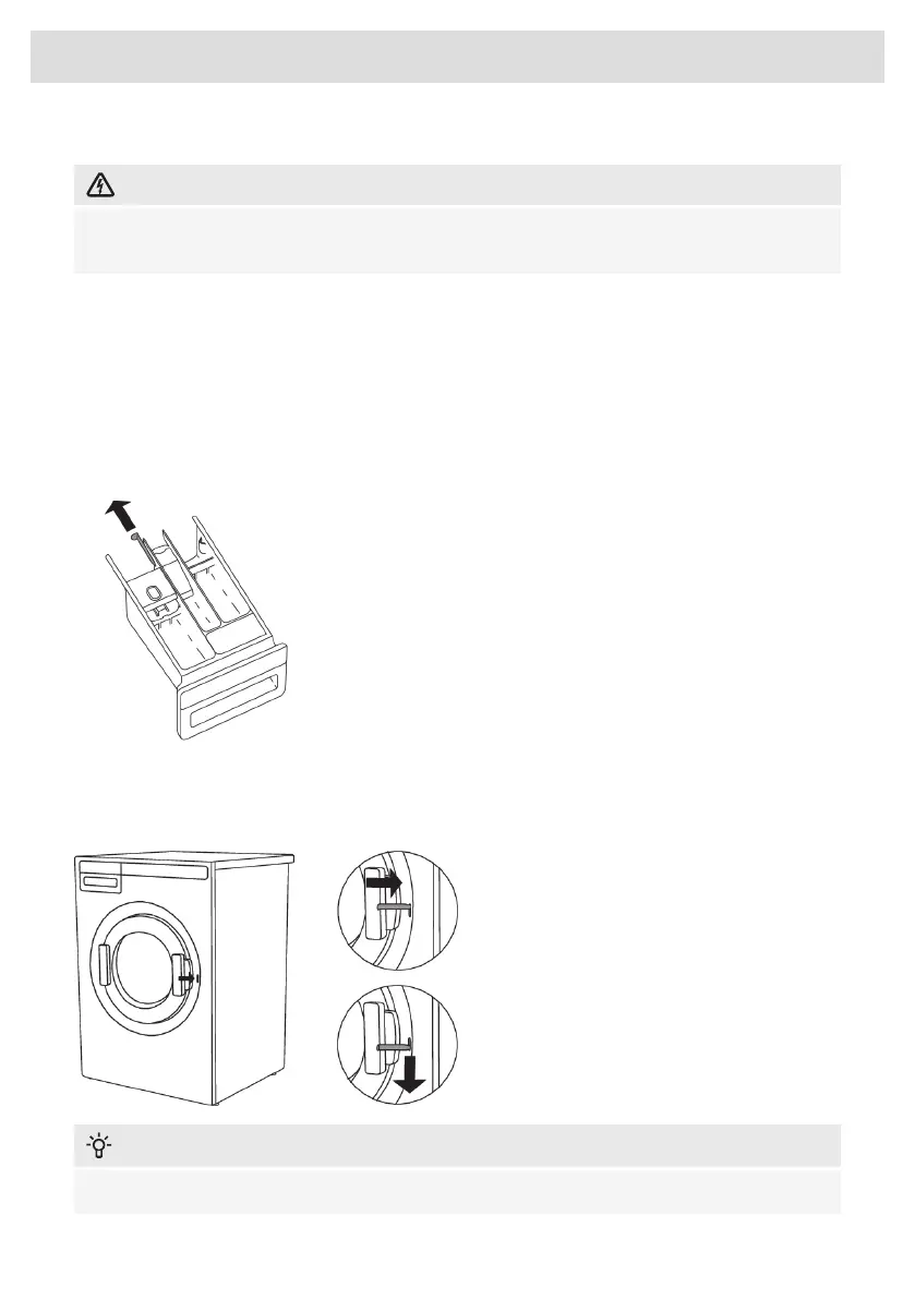 u een klik hoort), zodat de wasmachine deur wordt geopend. Als de deur ontgrendeld is, kunt