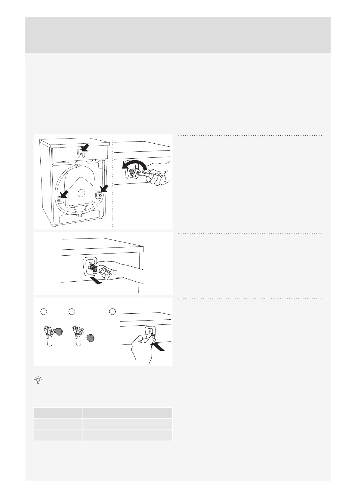Before using the appliance, remove the three transport bolts and plastic plugs which protect the appliance