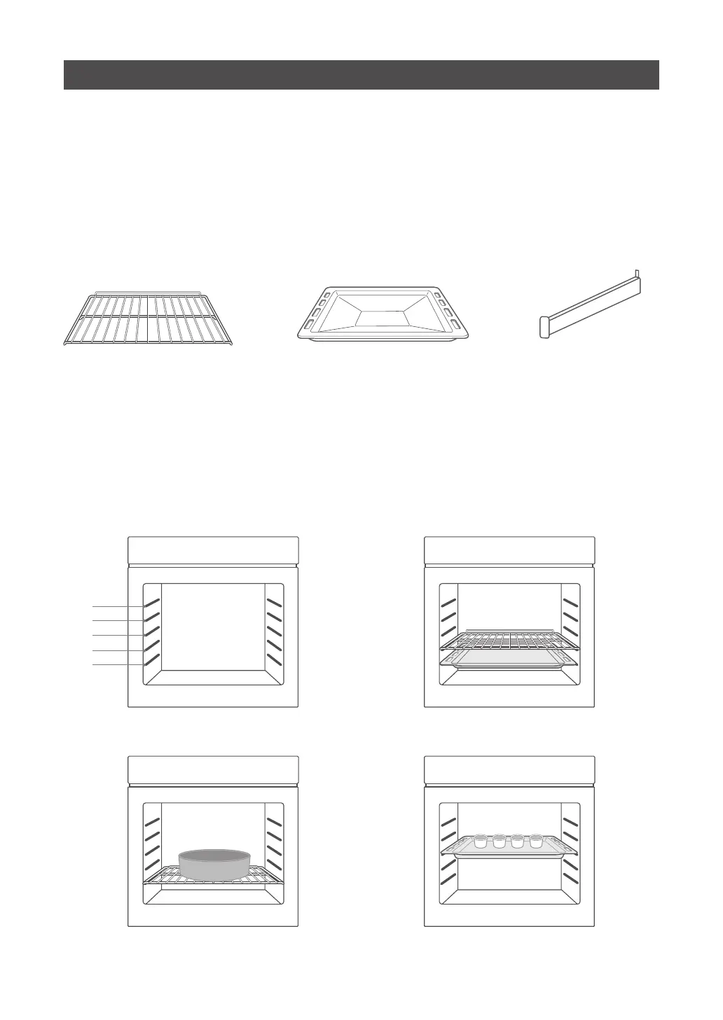 For the oven to work properly, the grill rack and Baking Tray should only be placed