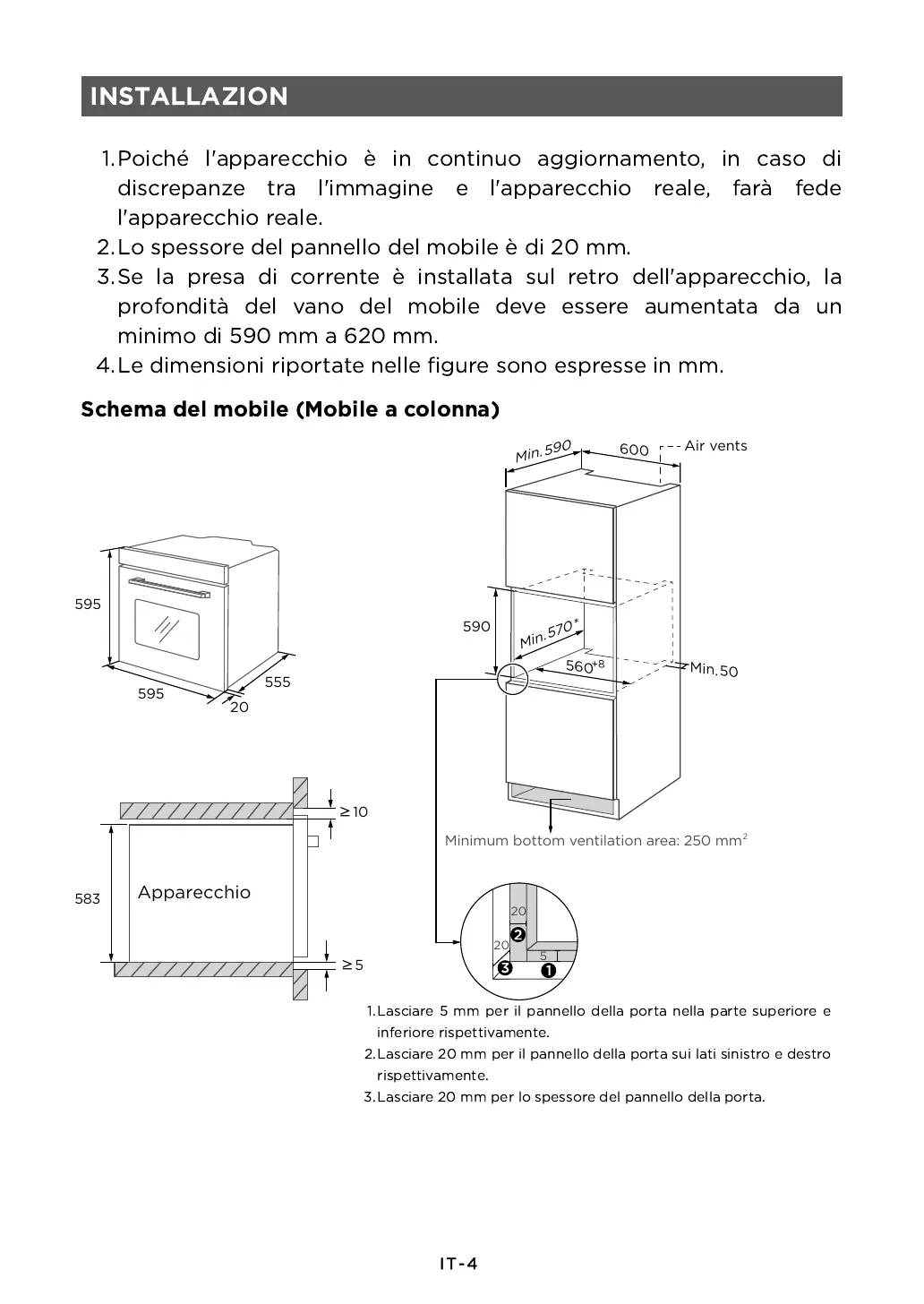 Minimum bottom ventilation area: 250 mm