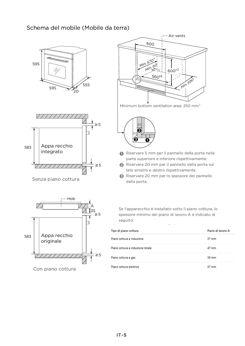 Minimum bottom ventilation area: 250 mm