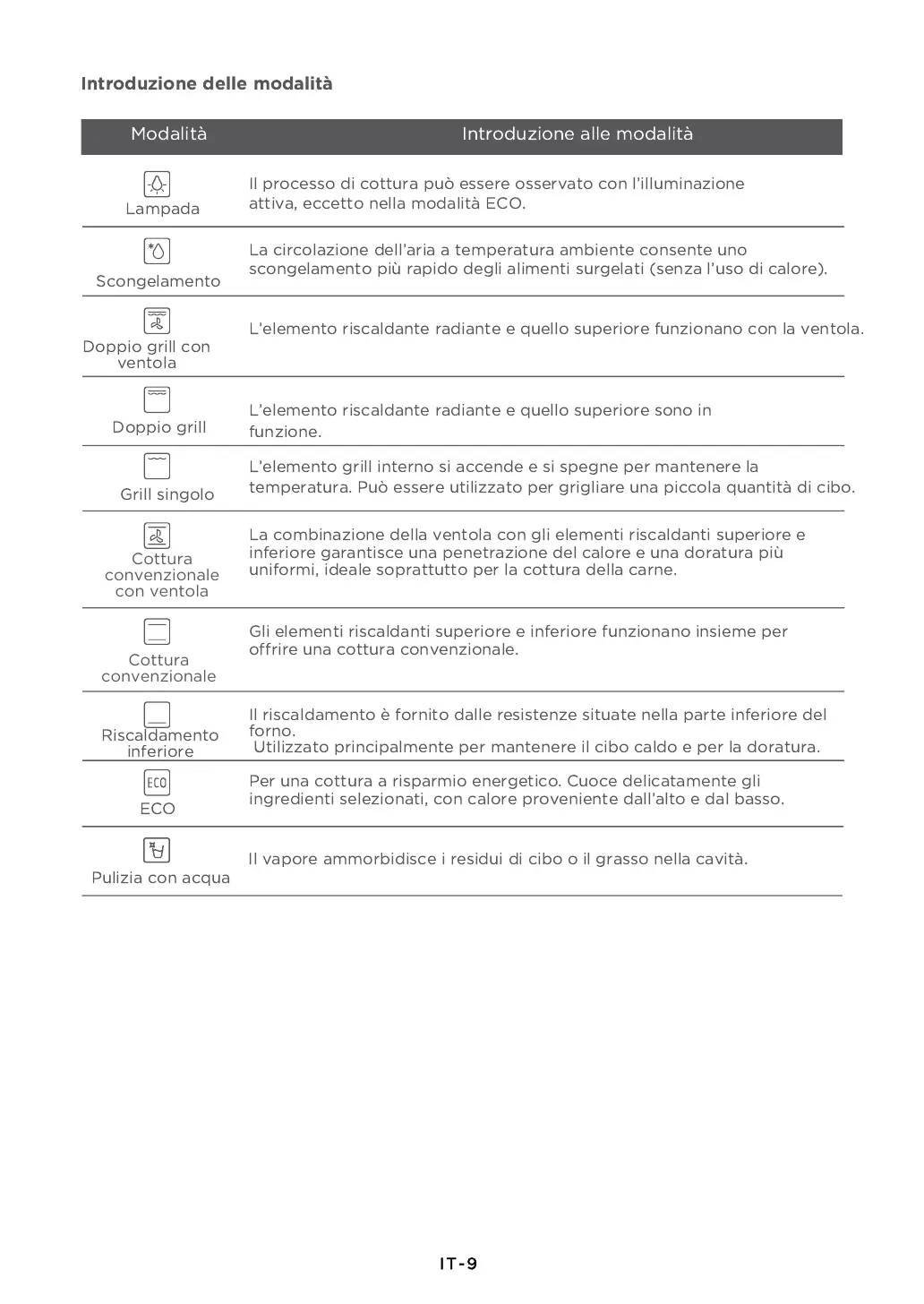 offrire una cottura convenzionale