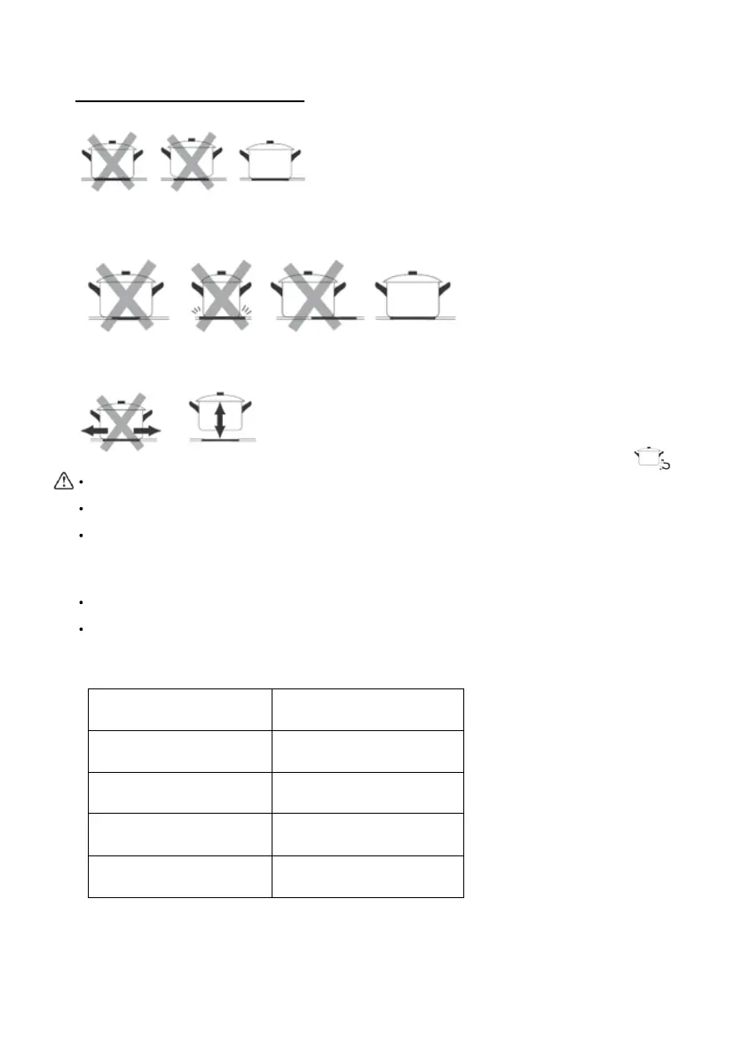 Cuando use utensilios de cocina no adecuados, la zona de cocción no se calentará. La pantalla se apagará automáticamente