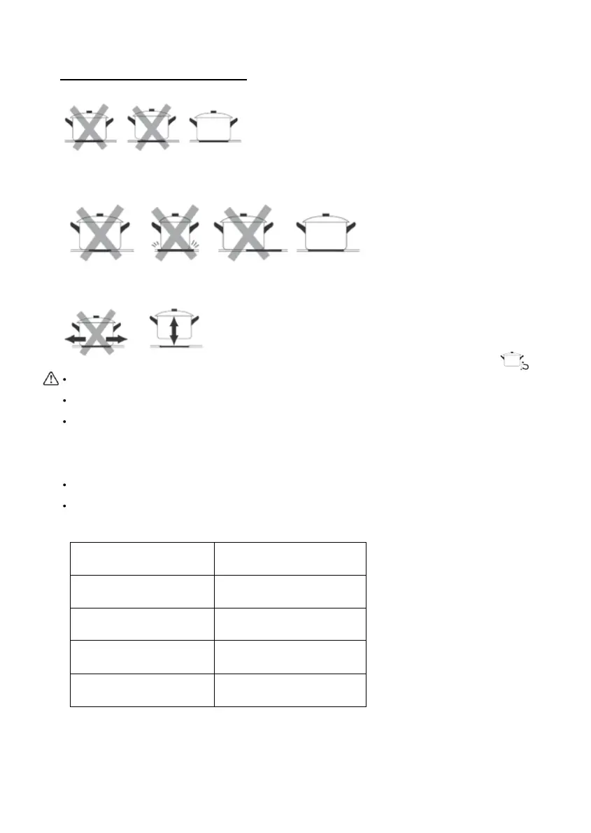 será utilizada de forma mais eficiente. Panelas com diâmetro menor do que o especificado na tabela abaixo não serão