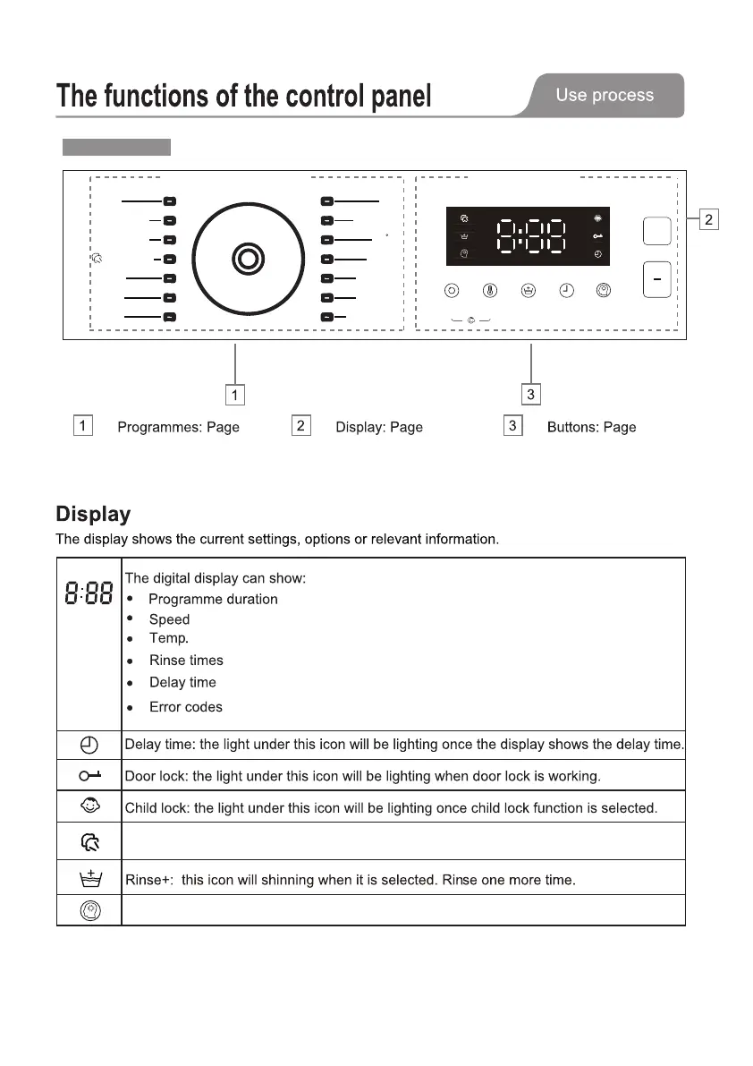 Steam Wash: the light under this icon will be lighting once Steam Wash function is selected