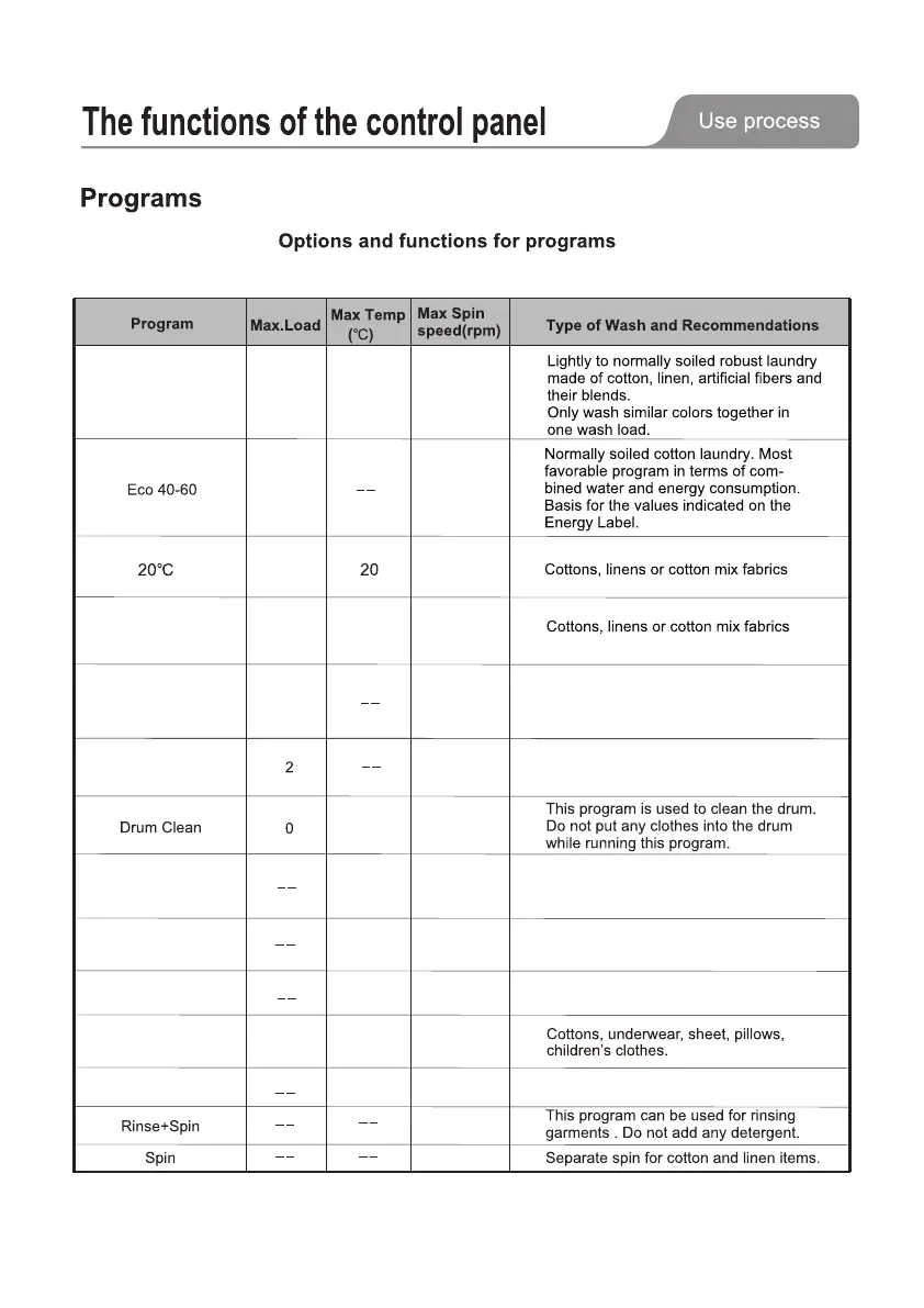 speed in the spinning phase, the higher the noise and the lower the remaining moisture content.