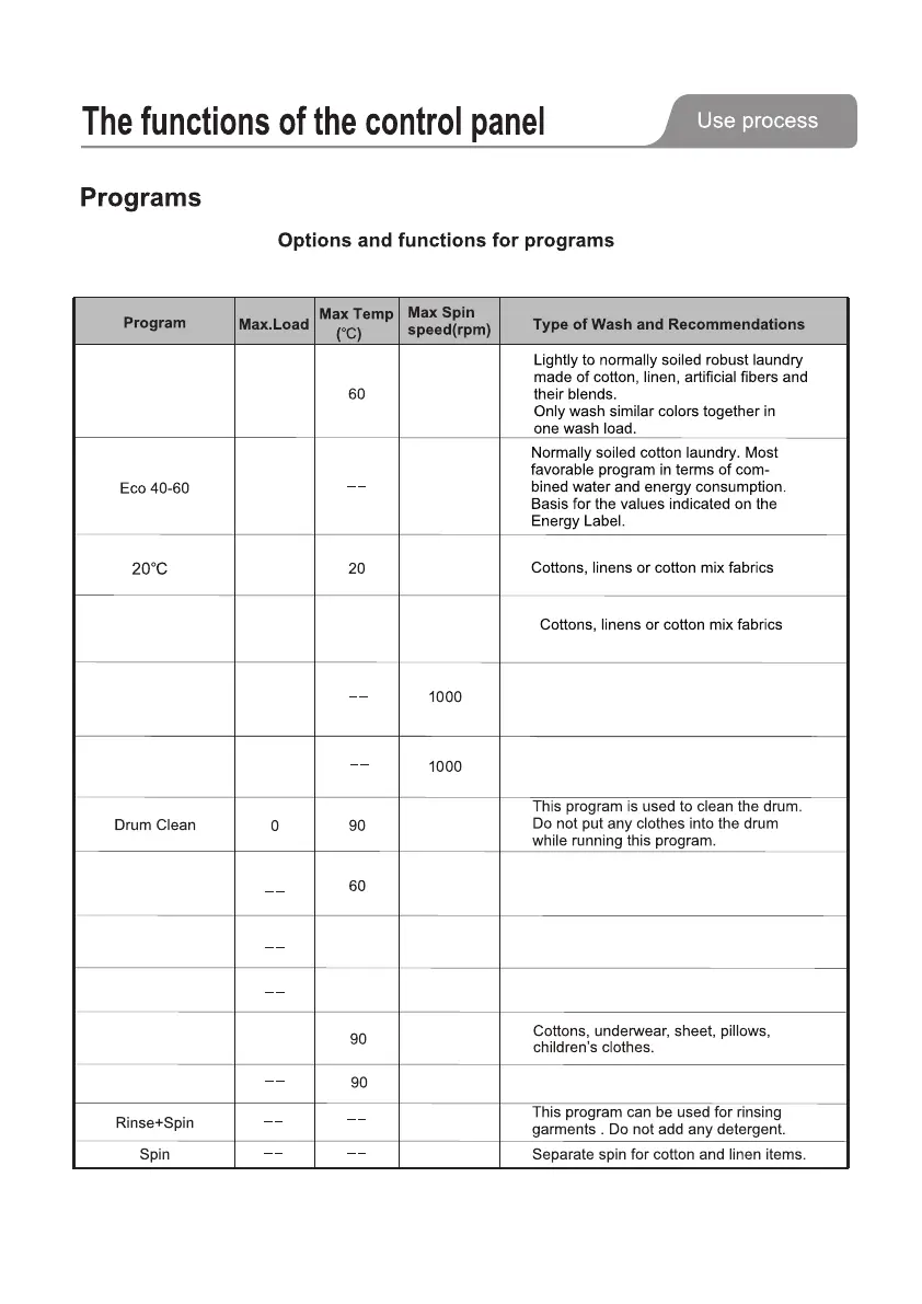 speed in the spinning phase, the higher the noise and the lower the remaining moisture content.