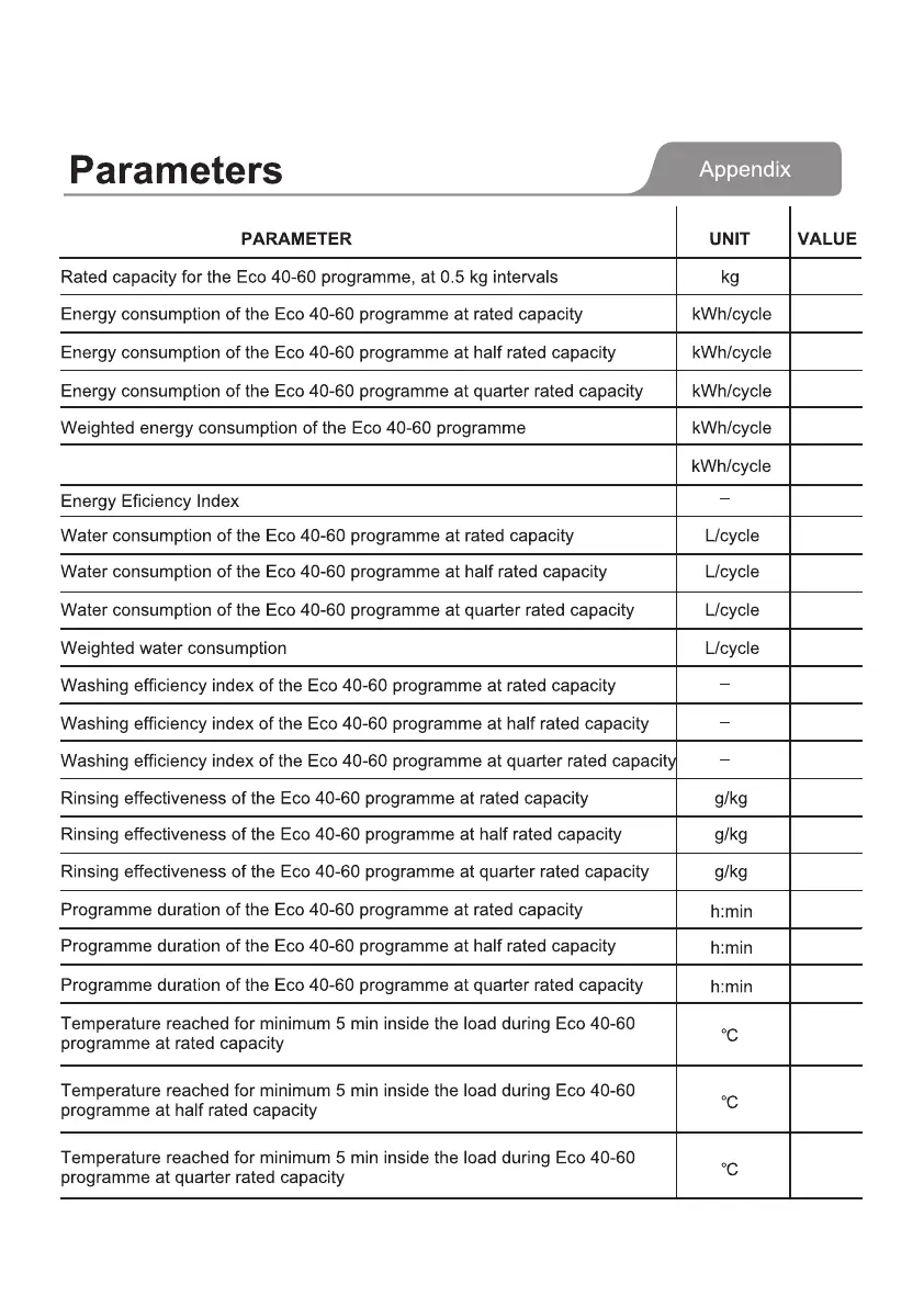 Standard energy consumption of the Eco 40-60 programme(SCEw)