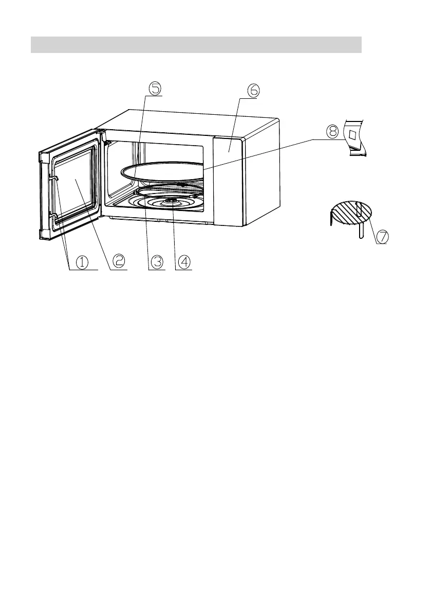 Os alimentos ficam sobre o prato giratório, e sua rotação durante