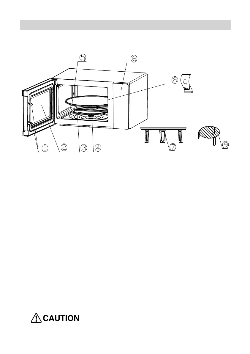 The food sits on the turntable, its rotation during operation helps