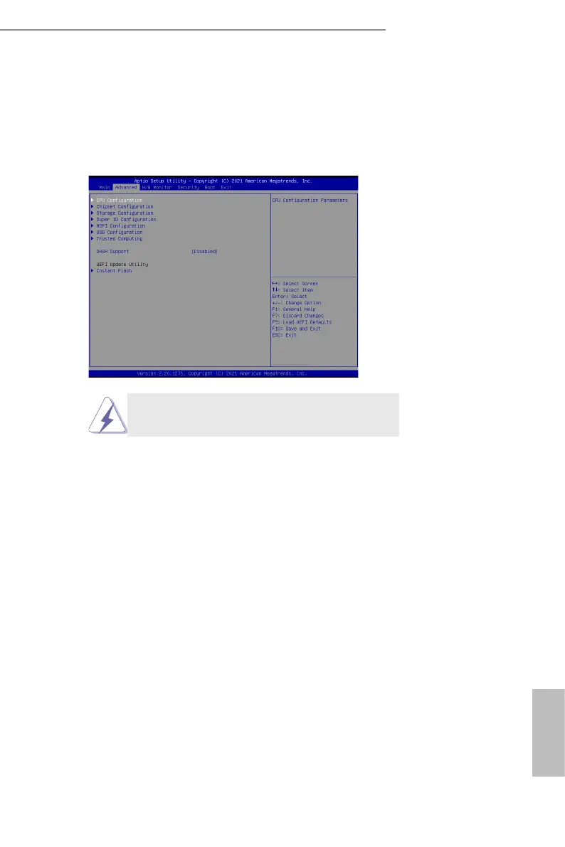 In this section, you may set the congurations for the following items: CPU Congu-