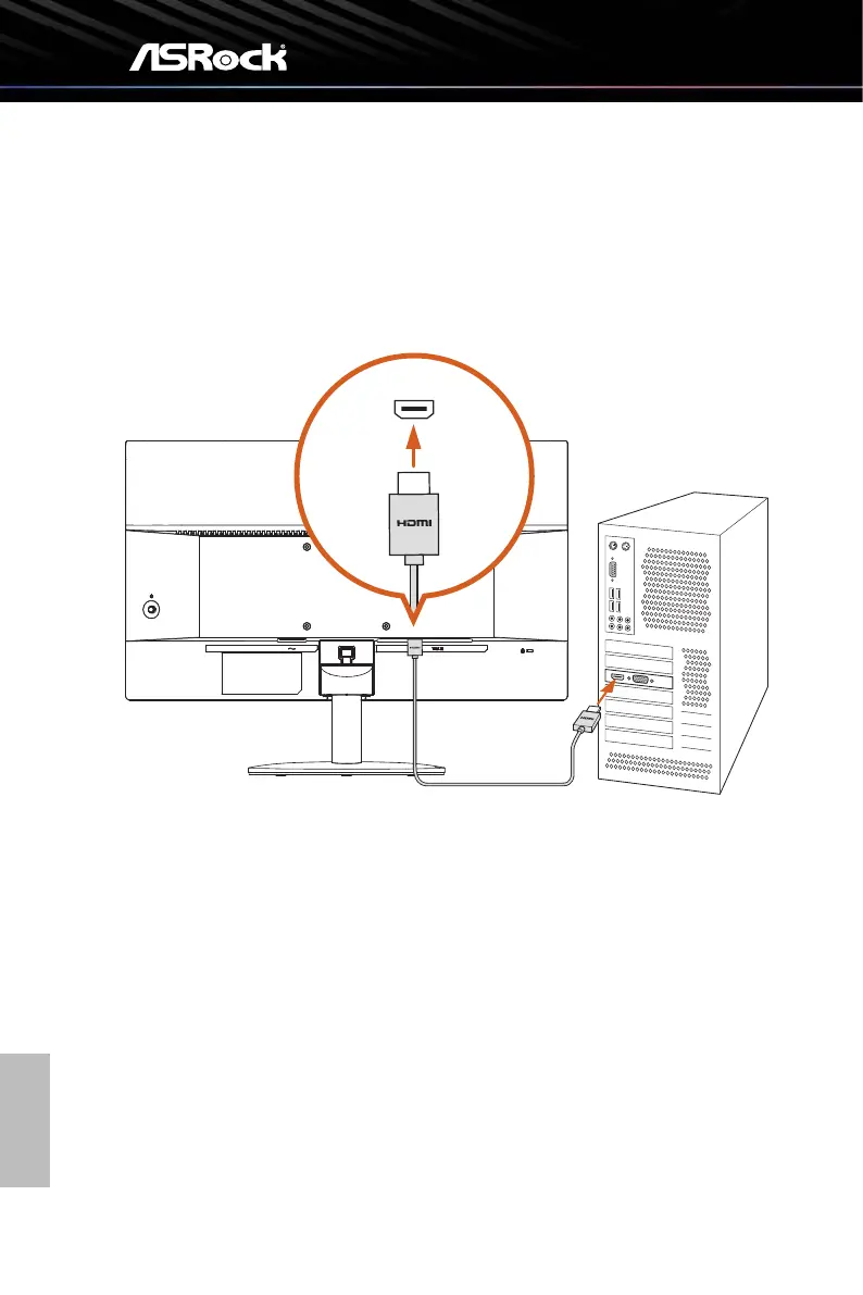 Connect one end of the HDMI cable to the HDMI connector on the rear side of the monitor.