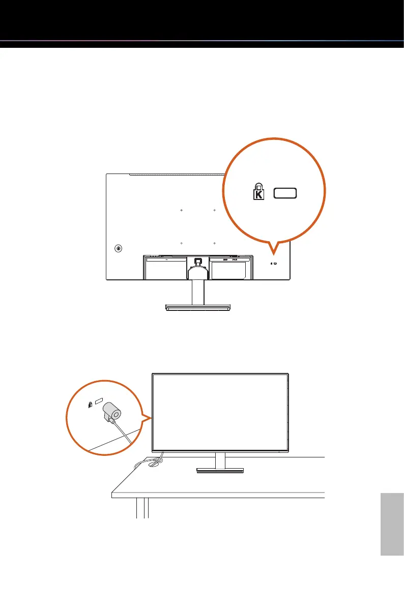 This monitor supports a Kensington-type security slot. The Kensington lock can be used to