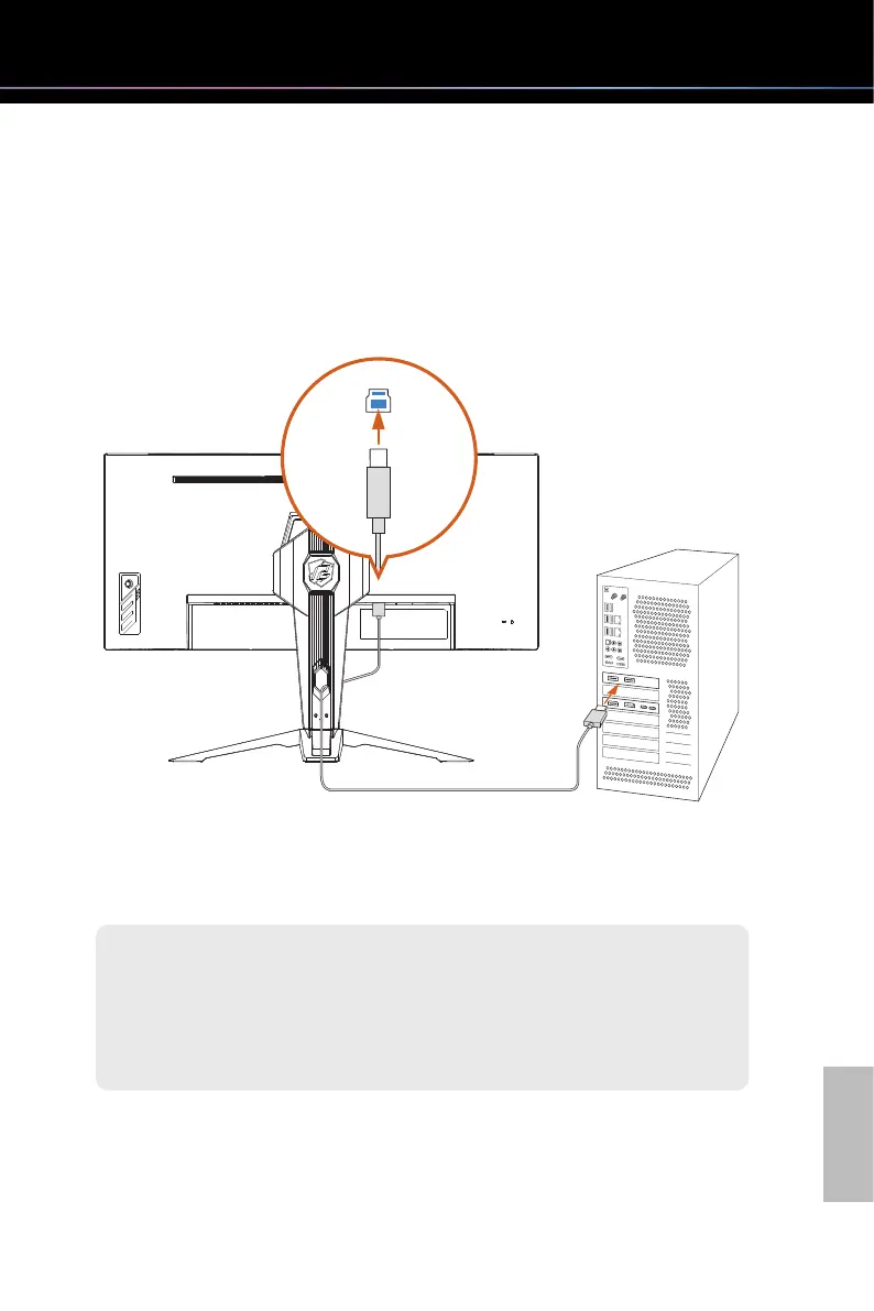type-B upstream port on the rear side of the monitor. Then connect the type-A end of the