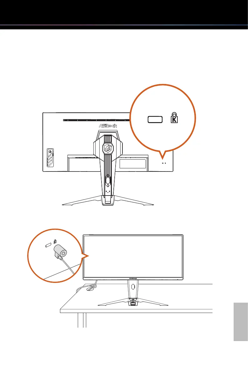This monitor supports a Kensington-type security slot. The Kensington lock can be used to