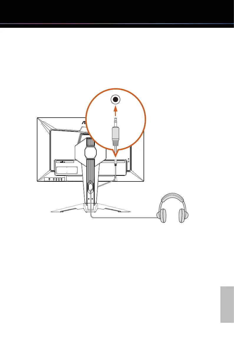You can connect earphones to the earphone jack on the bottom side of the monitor. Pass