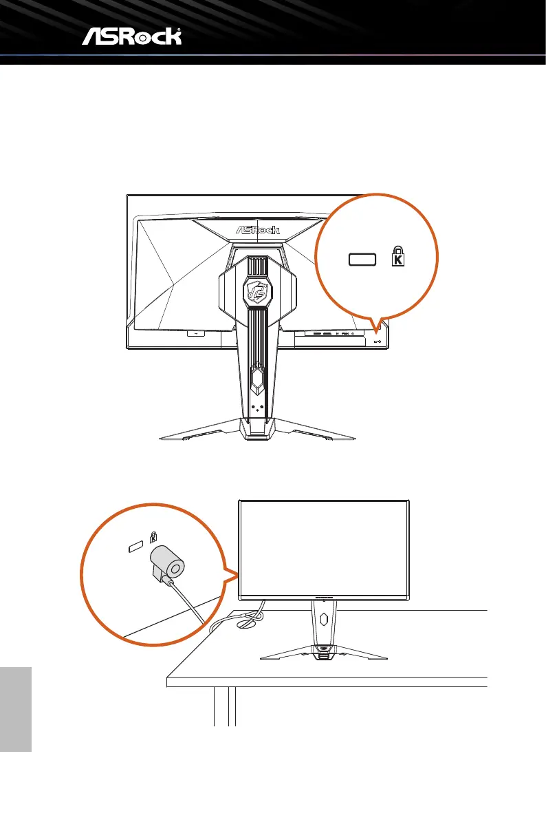 This monitor supports a Kensington-type security slot. The Kensington lock can be used to