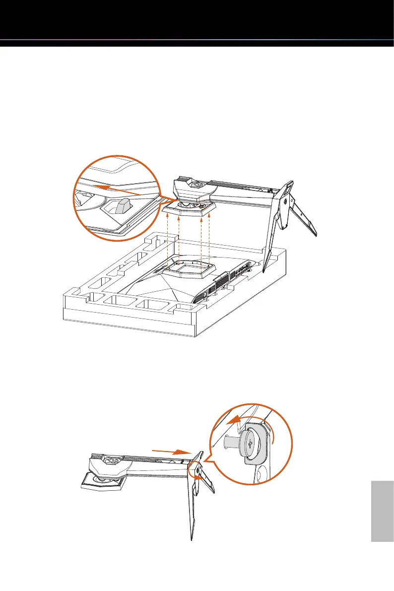1. Push the stand lock to the unlock position. Lift upward to disengage the tabs on the