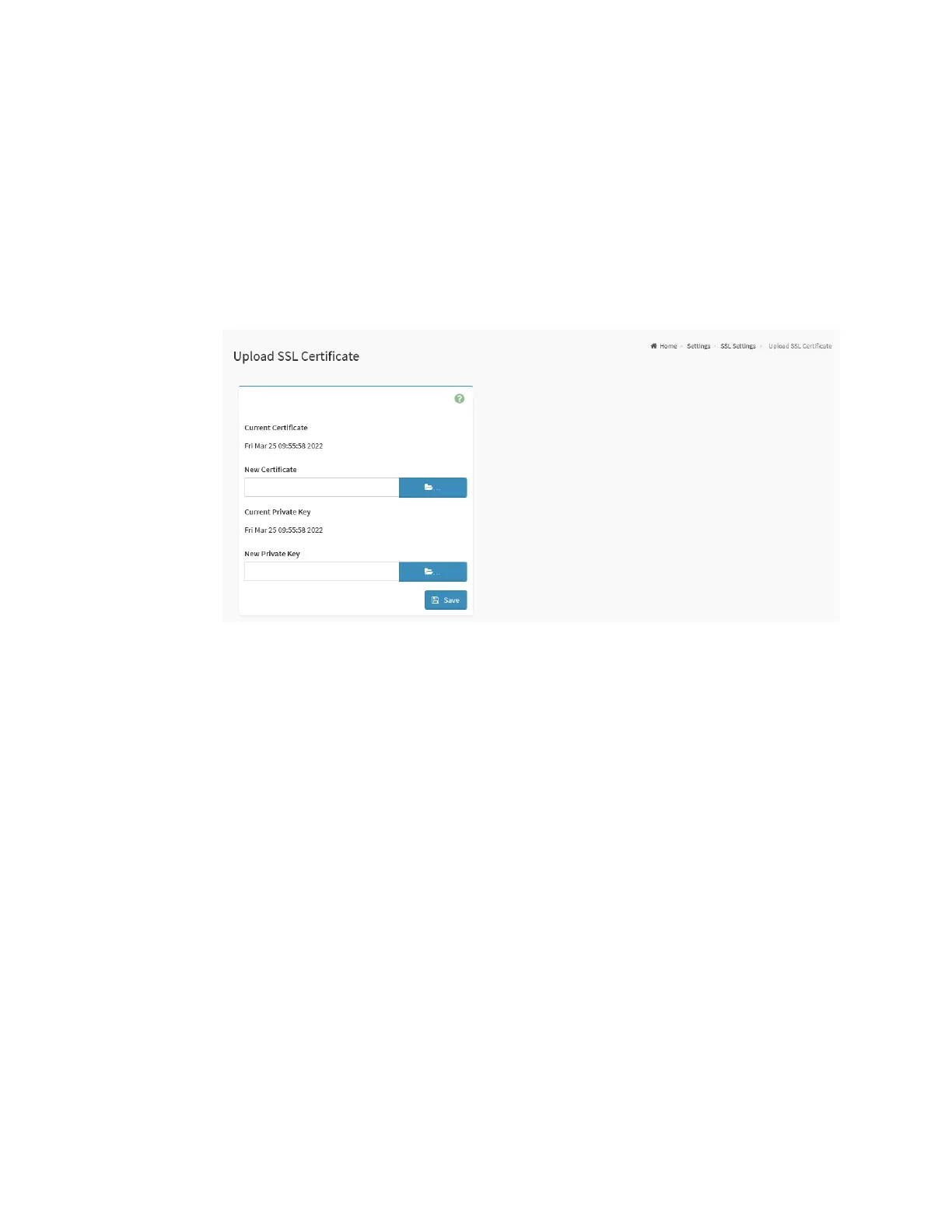 To view the Upload SSL Certificate page, click the Settings -> SSL Settings