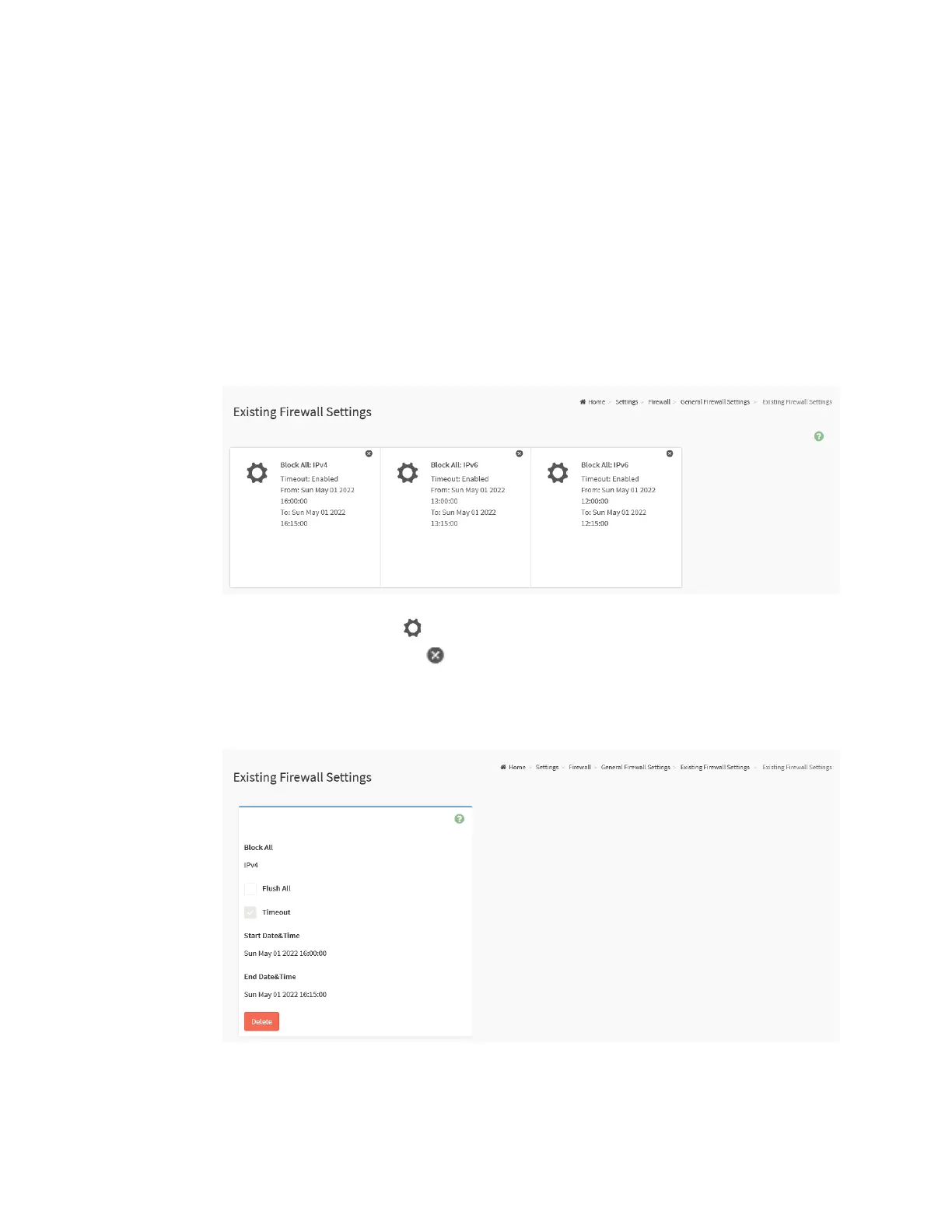 Figure 80. Snapshot of Existing Firewall Settings Page of General Firewall Settings