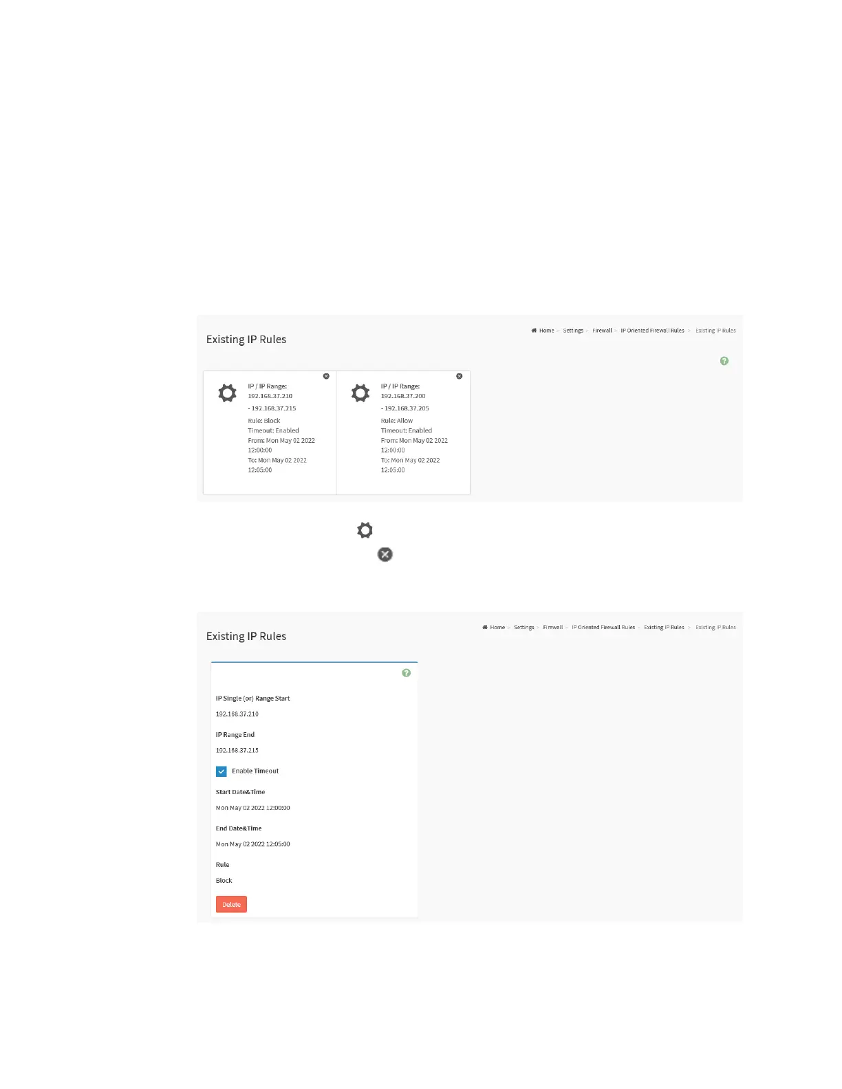 To view the Existing IP Rules page, click the Settings -> System Firewall ->